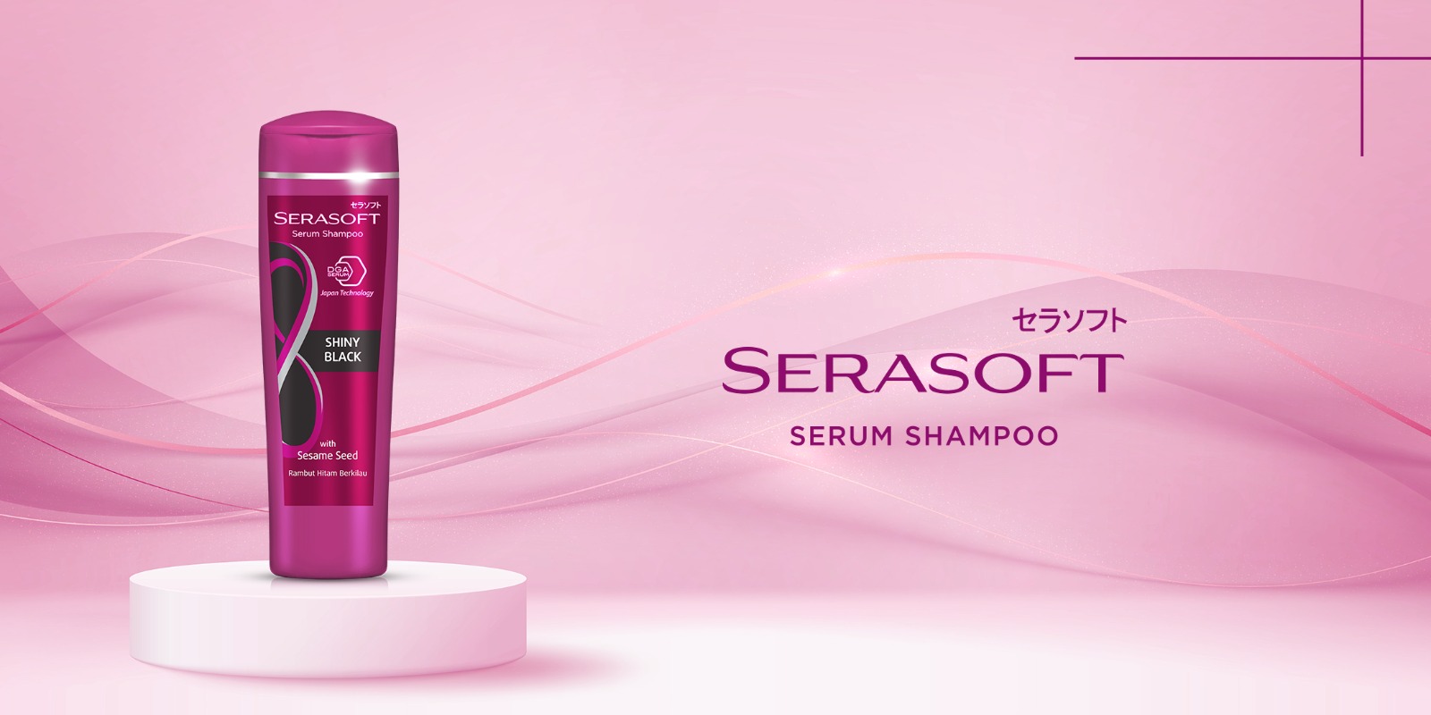 Serasoft Serum Shampoo Shiny Black mengandung DGA serum sehingga mampu menutrisi rambut hitam kamu 5x lebih cepat dari dalam. Sementara itu, kandungan Black Sesame di dalamnya mampu menyempurnakan kilau rambut hitam kamu.